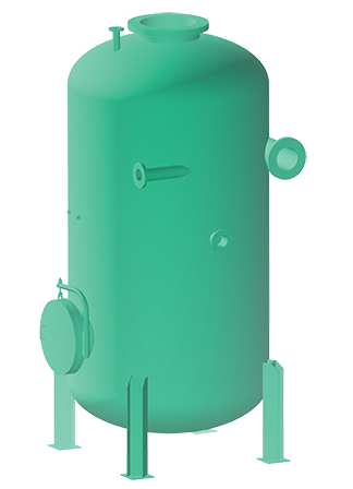 Even with the best pretreatment programs, boiler feedwater will contain some degree of impurities, such as suspended and dissolved solids. These impurities can accumulate inside the boiler over time. The increasing concentration of dissolved solids may lead to carryover of boiler water into the steam, causing damage to piping, steam traps and even process equipment. The increasing concentration of suspended solids can form sludge, which impairs boiler efficiency and heat transfer capability. To avoid boiler problems, water must be periodically discharged or “blown down” from the boiler to control the concentrations of suspended and total dissolved solids in the boiler. Sterling’s Blowdown Tank receives blowdown from the steam drum and steam generator. Sterling’s Blowdown Tank can also function as a gravity feed drain for the steam generator, when the generator is drained for maintenance. In Sterling’s design, flashing water enters the tank tangentially where centrifugal action separates the liquid from vapor. Flashed steam exits through a nozzle in the top of the tank, while the liquid is drawn from the bottom of the vessel. |